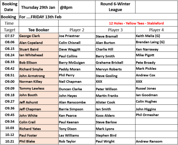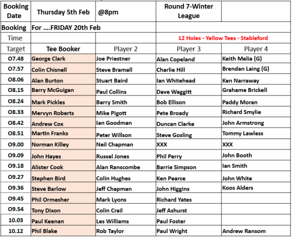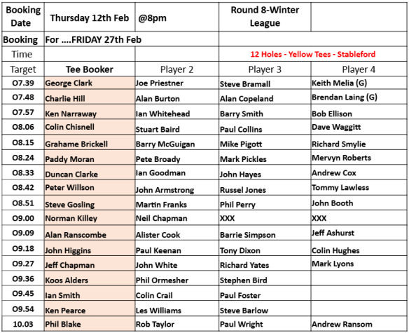 Another thoroughly miserable day, with heavy conditions testing both patience and perseverance. A slightly better day though than the previous two Fridays. A number of the more intelligent players wisely decided to remove their names from the play list, opting for warmth and comfort over a battle with the elements. For those who did tee up, play was slow and extremely hard work. The saturated fairways offered little run, and scoring reflected the tough conditions. Just five players from the field managed to score under par, a commendable effort given the circumstances. All in all, a day to forget, as far as I’m concerned. Let’s hope for better weather – and better golf – next time.