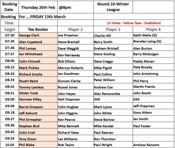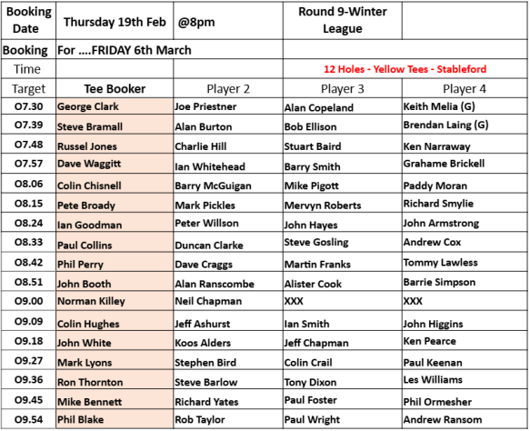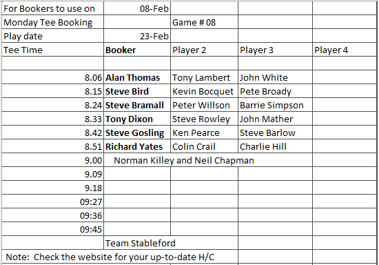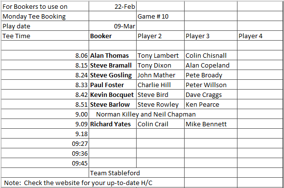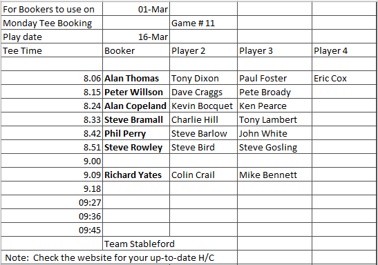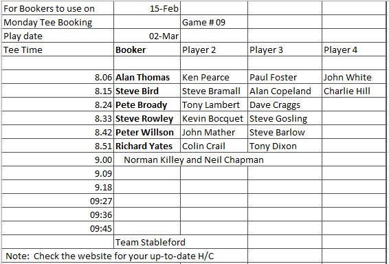Happy Mondays tee-booking schedule for Sunday 1 March