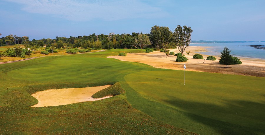 Duncan, who says he is missing us, has kindly sent us a postcard from Malaysia, ostensibly to cheer us up: The Els Course at Desaru, by the South China Sea: