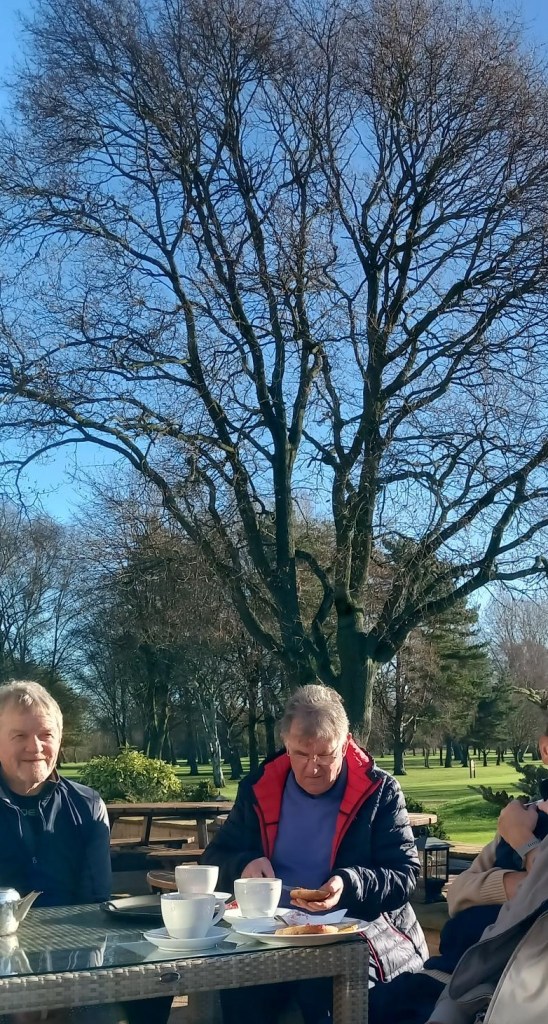By time we’d finished, the afternoon sun was thawing things out, and it was very pleasant on the terrace. Adding to the ambience was the ever-cheery Peter Broady, almost back to fighting fitness with his titanium knee, and who came to join us for tea and a teacake.