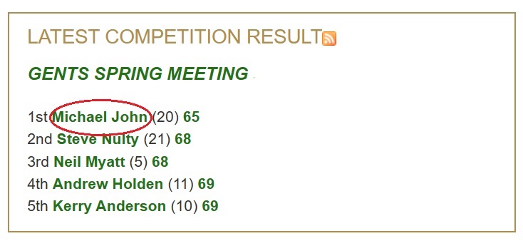 Well done Michael John, on winning the Gents’ Spring Meeting on Saturday 20th May by a clear 3 shots!