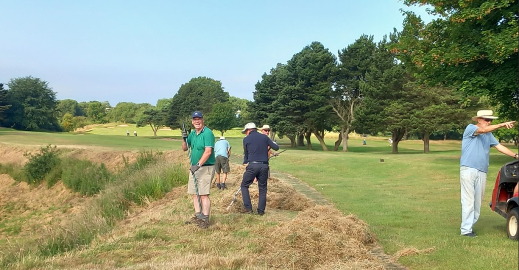 Here are Mr Captain (right) and members of the senior section, in the volunteer working party, making hay while the sun shines: