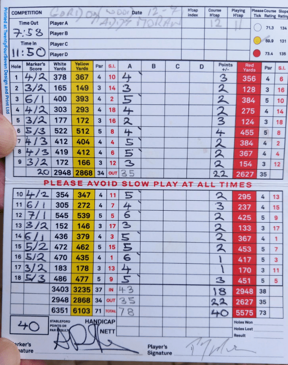 again on 40pts, including a 2 at the 2nd, and a magnificent par at the 16th, (one of only 2 players to par the 16th).