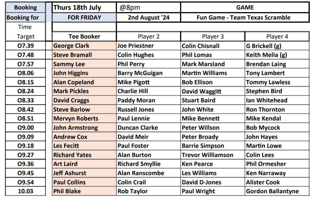 Note that 2 August will be our Fun Game. The format this year is Texas Scramble.