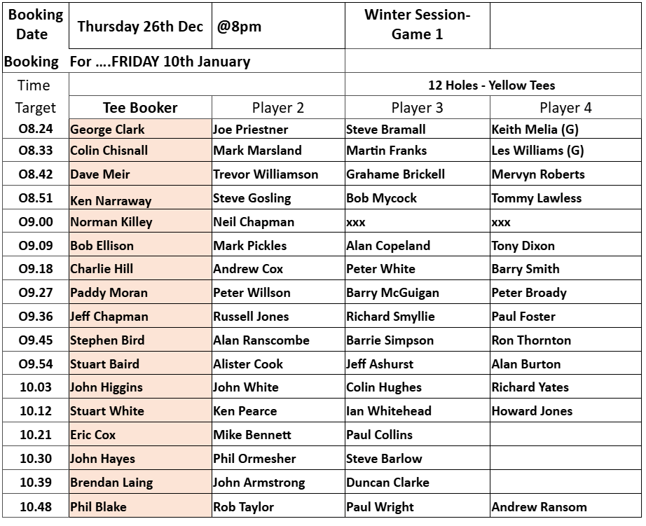 Individual Stableford. Played over the 8 holes open. Breezy, chilly but dry day whilst the game was played.
