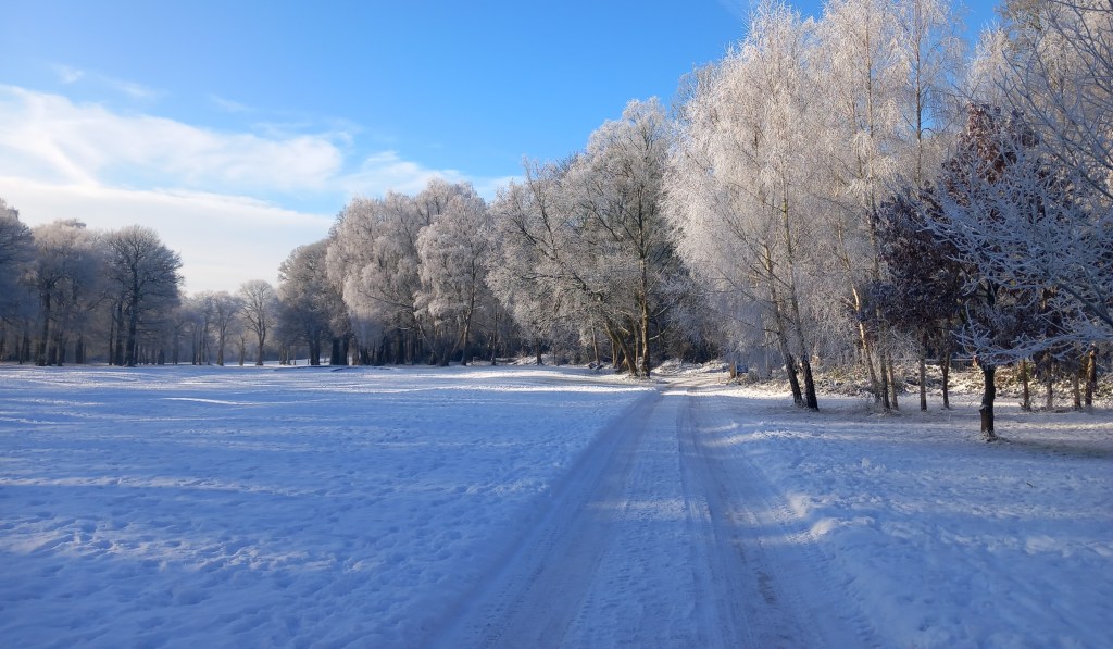 There has been a frustrating lack of opportunity to play golf since the floods of two weeks ago. However, walking in last Friday’s sunlit snow provided some compensation for the cancellation of Round 1 of the Winter League! I took this picture, walking down the 6th Hole (Par 5) at Dunham Forest. I think the 6th is the most picturesque hole on the course in all seasons.