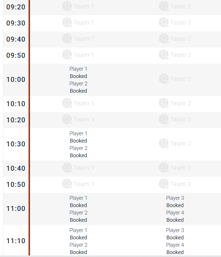 Booking schedule for tomorrow (Thursday 10 July)