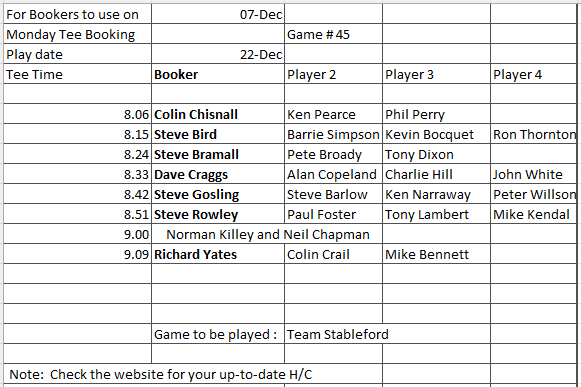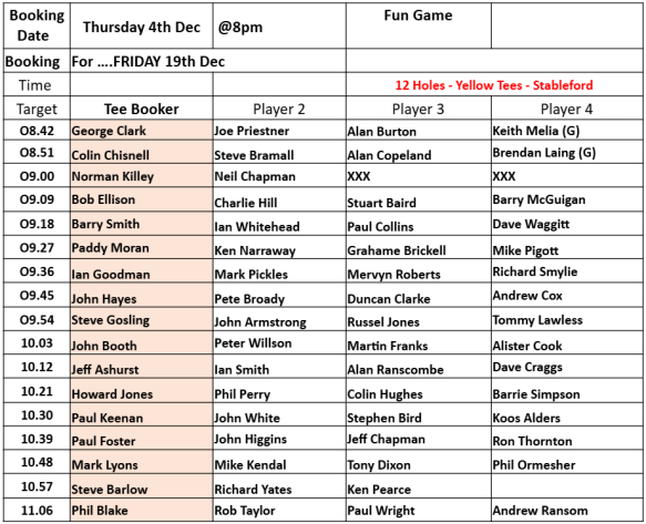 When I looked at 8:30 there were only 5 of our merry band still on the booking sheet. So, if your name is Chisnall, Copeland, Craggs, Bramall or Bocquet I’m sure you have everyone’s utmost respect – or you just didn’t unbook yourselves.