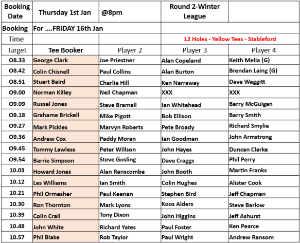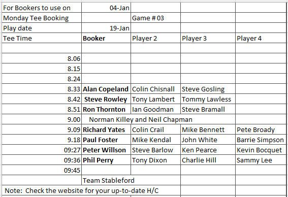 Happy Mondays tee-booking schedule for Sunday 4 January