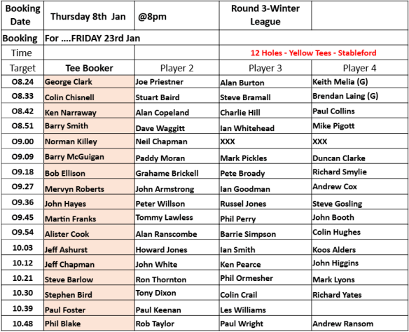 Happy Mondays tee-booking schedule for Sunday 11 January