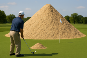 C is correct. See Rule 13.1c. Sand and loose soil on the putting green may be removed without penalty.