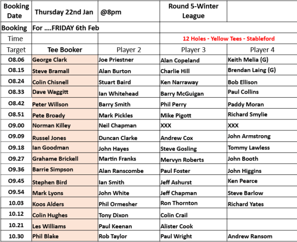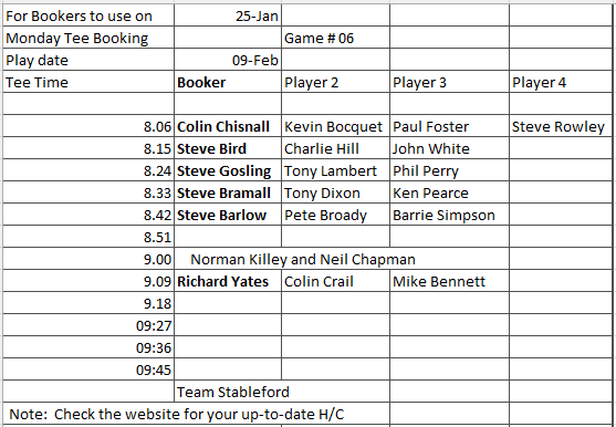 Happy Mondays tee-booking schedule for Sunday 25 January